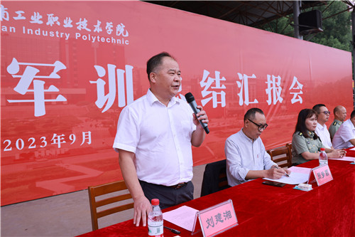 本网讯9月30日上午,2023级新生军训总结汇报会在我校田径场隆重举行。校党委书记刘建湘、副校长周梦顺、军训团团长彭利民,相关职能部门负责人,二级学院院长、党总支书记、副书记,新生班级辅导员、班主任,2023级全体新生参加。总结汇报会由副校长成涛主持。