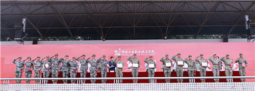 军训先进工作单位代表上台领奖