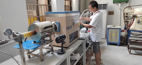 高导“芯”材创新创业团队成员放置石墨坩埚