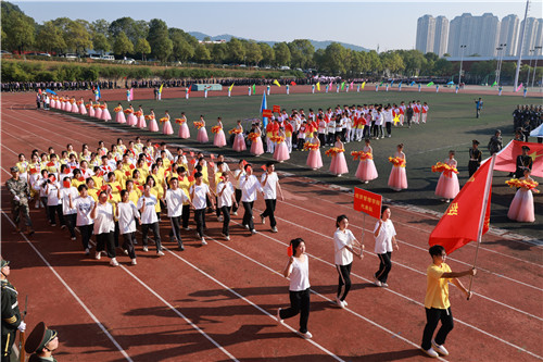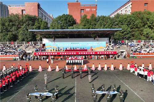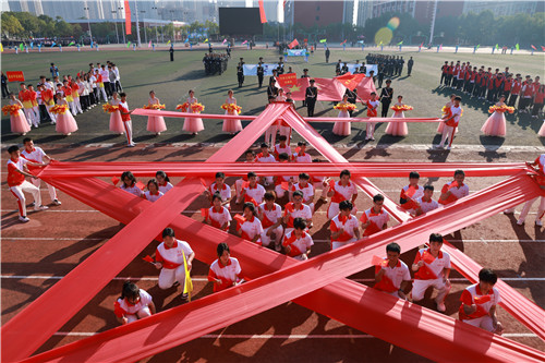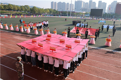 金秋时节,乘着阵阵微风,《运动员进行曲》在田径场上回荡。国旗礼仪方阵队、校旗方阵队、会旗方阵队、持枪方阵队、彩旗方阵队、鲜花队、裁判员方阵队、高水平运动队方阵队、各二级学院代表方阵、各分工会教职工方阵等依次走过主席台。矫健的步伐、嘹亮的口号、缤纷的色彩组成一道道风景,在阳光下熠熠生辉。鲜花队的舞蹈摇曳生姿,汽车工程学院方阵蜂鸟车队的亮相帅气十足,电气工程学院方阵用表演和解说展示中国半导体产业发展历史,信息工程学院方阵用手牌摆出了“计算机键盘”的模样……他们各具专业特色的道具和创意的表演,展示了工院学子昂扬向上、敢于创新的精神风貌。