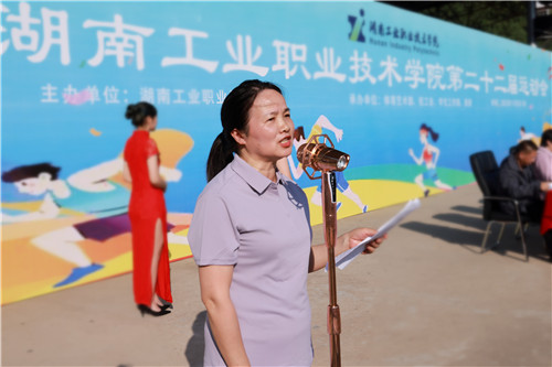 副校长谢希钢在开幕式中致辞。她表示,学校把体育事业作为高质量发展的重要内容,校运会正在成为竞技体育的助推器、群众体育的大舞台、人才培养的孵化器,希望师生大力弘扬中华体育精神,展现精湛的运动技能与良好的精神风貌,力争运动成绩与精神文明双丰收,为推进学校高质量发展做出工院人的新贡献!