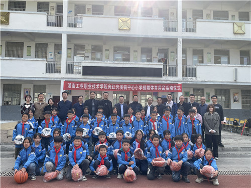 本网讯 11月23日,我校在对口帮扶的龙山县红岩溪镇中心小学开展体育用品捐赠活动,学校纪委书记王波、体育艺术部长周文,龙山县委组织部副部长彭勇刚、红岩溪镇人大主席田永林、红岩溪镇小学校长陈勇、湖南工业职院驻头车村工作队队长刘峥等出席活动。