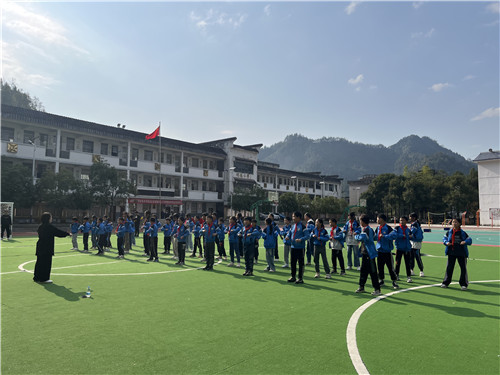 捐赠活动后,我校黄雯老师给孩子们上了一堂武术课。“抱拳礼是一种具有深厚文化底蕴的礼仪形式,其历史可以追溯到3000多年前的周代。”黄雯讲解了中华武术抱拳礼的一招一式和蕴含的意义,并传授了六式长拳。孩子们额头渗出的汗水、干净利落的动作、嘿哈的吐气声,让小学操场热闹起来。