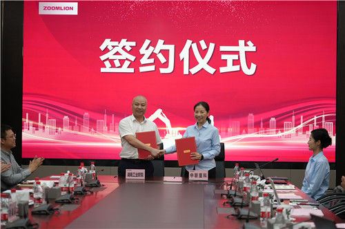 本网讯 5月30日,我校党委书记刘建湘、校长吴亮红,副校长谢希钢、李强,教务处、招生就业处、校企合作处、机械工程学院、电气工程学院、汽车工程学院、继续教育学院等相关负责人一行到中联智慧产业城调研交流,并和中联重科股份有限公司签订共建工程机械中联学院战略合作协议,此次签约是双方续写新一轮战略合作计划的重要举措之一。中联重科工会主席李江涛、人力资源管理中心部长李晓虹、土方机械公司人力资源部经理周建邦等参加了签约仪式。