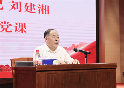 学校党委书记刘建湘同志讲话并讲授纪律党课。刘建湘代表学校党委,向获得“光荣在党50年”纪念章的4名老党员、新加入党组织的146名预备党员表示热烈的祝贺,向辛勤工作在学校各个岗位上的广大党员同志致以节日的问候。他表示,过去一年,全体党员凝心聚力、团结一致,充分发挥了基层党组织战斗堡垒作用和党员、干部先锋模范作用。他希望,学校作为服务湖南先进制造业的“排头兵”,要持续深化教育教学改革,提升关键办学能力,擦亮“楚怡”“工程机械”两张名片,为建设现代化新湖南提供有力人才保障。