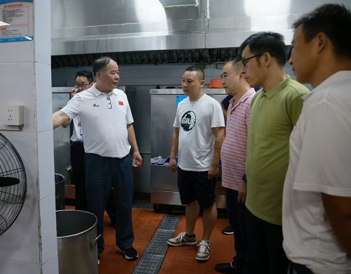 本网讯 8月31日,学校党委书记刘建湘,党委副书记、校长吴亮红,副校长侯新华、李强,带领党政办、教务处、学生工作部、后勤处、保卫部等部门负责人对学校教学楼、图书馆、实训室、集贤公寓、学生食堂、田径场等多个场所,开展了秋季校园安全检查工作。