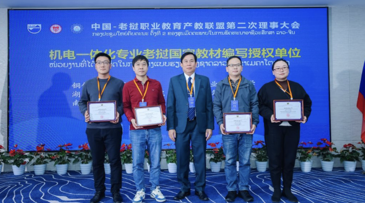 会议还为2024年“老挝职业教育机电一体化专业国家教材开发项目”立项单位颁发了授权书。我校电气工程学院《机电设备安装与维护》教材立项为“老挝职业教育机电一体化专业国家教材开发项目”。