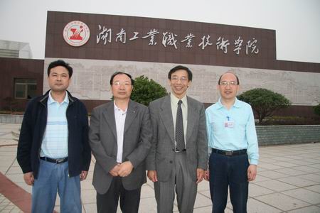 Shen Pang教授(右二)与党委书记廖洪元(右三)等领导合影留念