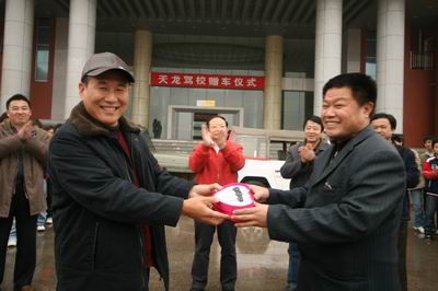 12月20日下午,天龙驾校赠车仪式在我院图书馆前举行。院党委书记廖洪元、副院长刘继平、天龙驾校副校长陈锐康、刘新华以及机械系部分老师及学生代表参加了仪式。