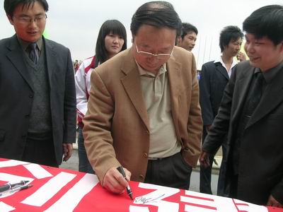 廖洪元书记、金潇明院长带头在“创建国家示范性高职院校从我做起”的横幅上签名。之后,参加开幕式的全体师生签了名。