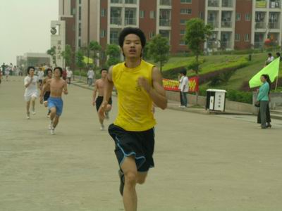 在总裁判组长刘述亮强调了比赛的注意事项及规则后,近千名选手怀着激动的心情纷纷抢道而出,宛若一群驾风狂腾的野马。一时间,图书馆门前欢声雀跃声连绵不绝。随着比赛的进行,从中医学院到我院的主干大道上,人流不绝如缕,宛若一条长龙,情景十分壮观。这条长龙挥洒着汗水,展现着我院蓬勃的精神面貌,是选手们用坚定不移的步伐挑战了自我,演绎了一场壮观。