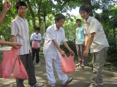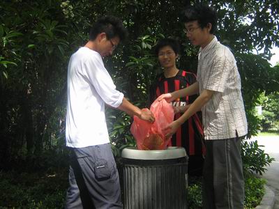 学员们正在处理垃圾