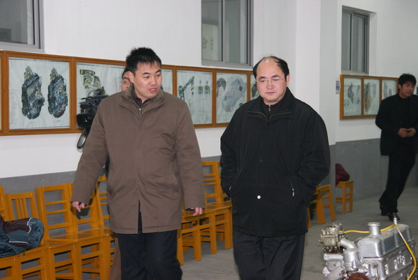 王副厅长(右)参观汽车发动机实验室