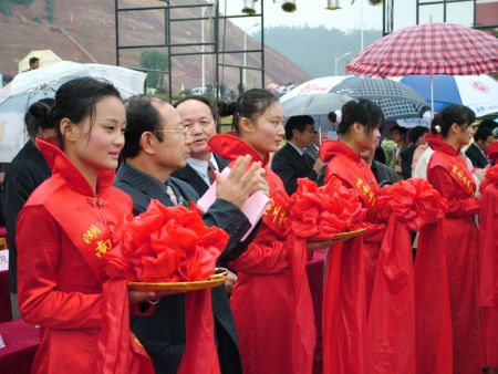 上午9时28分,欢庆的礼花炮伴随着激昂的运动员进行曲响彻天空,拉开了庆典的序幕。庆祝大会在庄严的国歌声中正式开始。