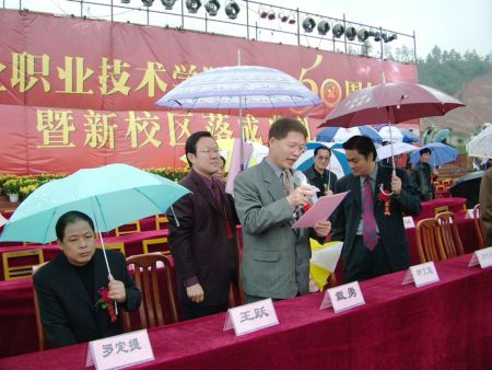 湖南省政协原副主席范多富、湖南省机械行业管理办公室党组书记、主任宋建民、湖南省教育厅副厅长王键在院党委书记廖洪元、院长金潇明陪同下在新纪元广场为学院新校牌揭幕,并为学院含浦新校区启用剪彩。