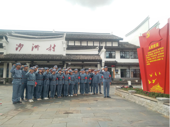 全体党员首先来到桂东县沙田镇第一军规广场,瞻仰了毛泽东同志颁布“三大纪律、八项注意”纪念碑,参观了毛泽东、陈毅等老一辈无产阶级革命家留下光辉足迹的万寿宫。