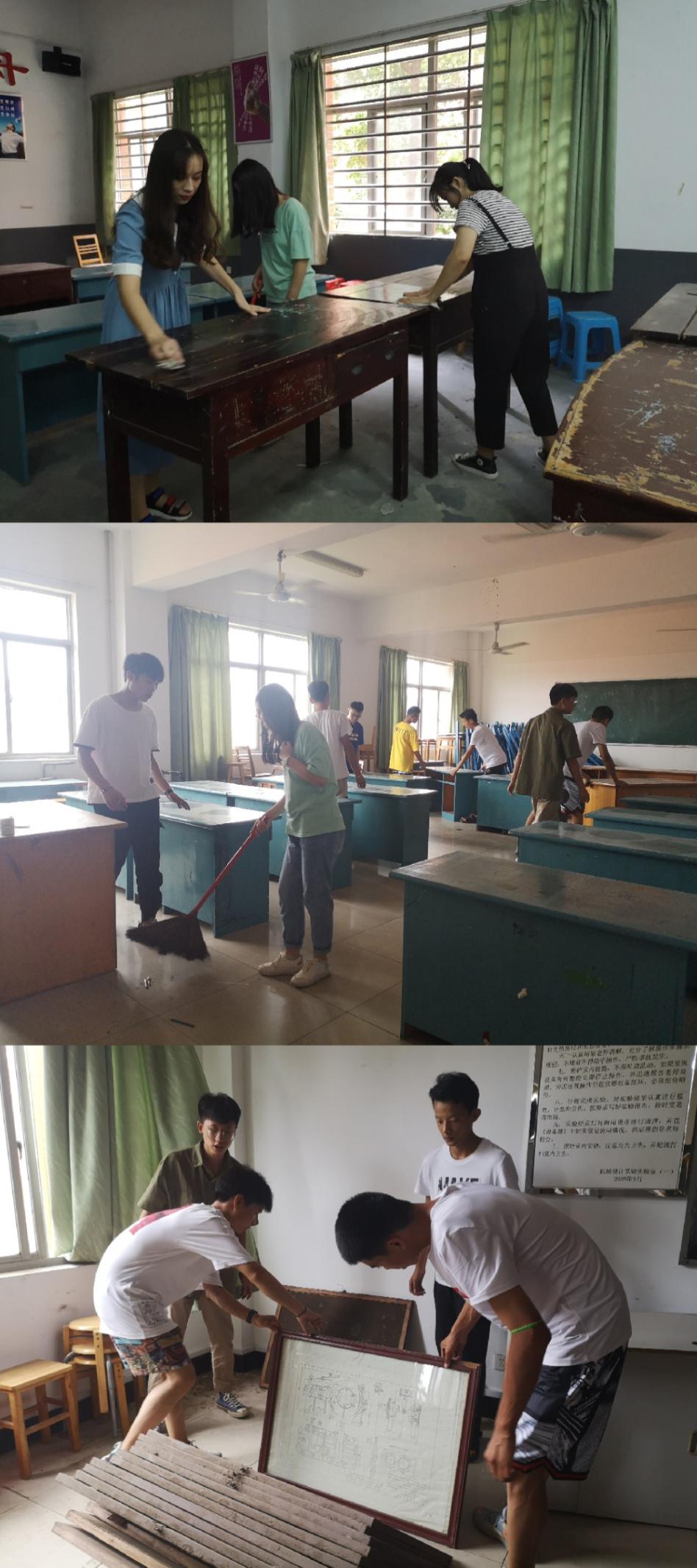 本网讯 9月1日,工业设计与艺术学院学生党支部开展“旧貌换新颜,展露新气象”校园公益活动,在学校图书馆7楼和五教学楼打扫卫生、整理教室,以崭新的面貌迎接新学期的到来,参加本次活动的有工业设计与艺术学院党校第66期、68期、70期入党积极分子。