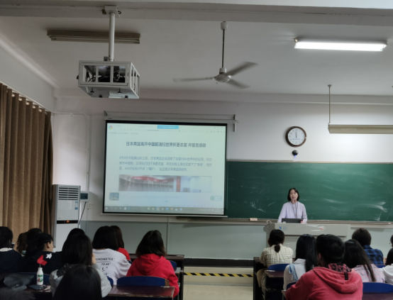 宋晓莉老师到达教室比较早,做好上课的充分准备工作后,引导学生整齐靠前坐成两个方阵。在课堂育人三分钟环节,内容准备非常用心,她借用“日本男篮离开中国之前清扫世界杯更衣室并留言感谢”这个话题,引导同学们爱护身边环境,自觉保持和维护实训室卫生。