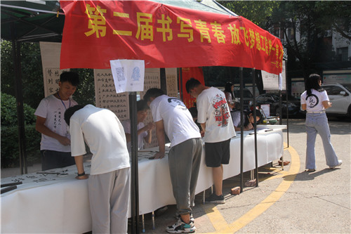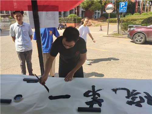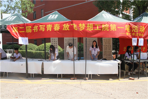 本网讯 9月21日上午,我校楚艺书法协会在学生公寓门口举办“工院第一笔”活动,宣传书法文化,打造书香校园。
