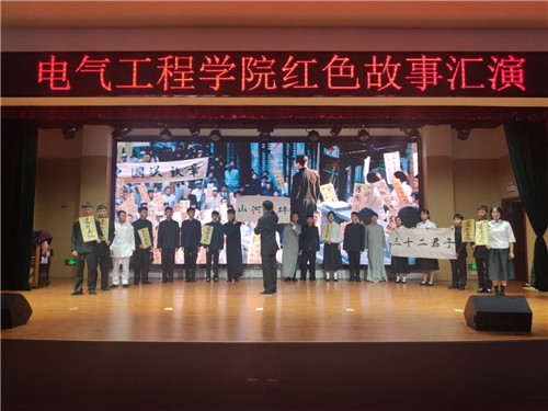 本网讯 11月11日18时30分,电气工程学院团总支学生会主办的红色故事汇演在1102大学生活动中心拉开帷幕,来自电气工程学院的300余名师生观看了汇演。