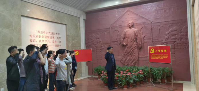 “我志愿加入中国共产党,拥护党的纲领,遵守党的章程……”活动中,在纪念馆序厅,经济管理学院党总支书记李树德带领全体党员教师,重温入党誓词,回顾入党初衷。
