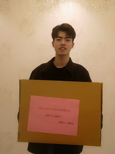 “祖国有难,八方支援。我捐赠的口罩数量虽然不多,但是代表着我们普通大学生对国家抗击疫情的一份心意,我们要用自己能力所能及的方式,为武汉加油,为中国加油!”谭骏文说道。