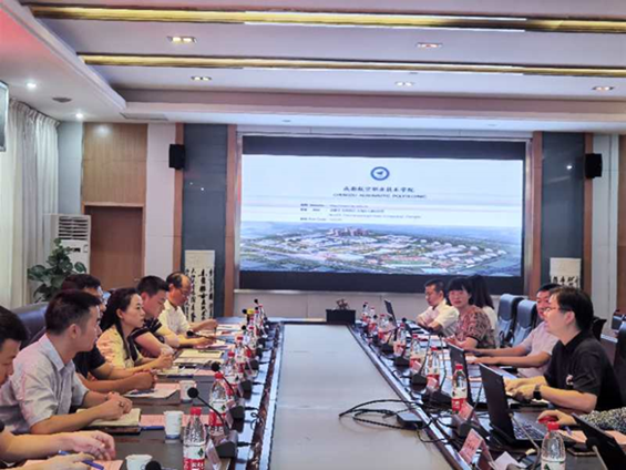 7月27日,调研组一行来到达成都航空职业技术学院,熊熙副校长和该校汽车工程学院刘铁院长进行热情地接待来访人员,双方就各自院系的专业建设、人才培养以及教学资源库建设等方面进行深入探讨与交流。
