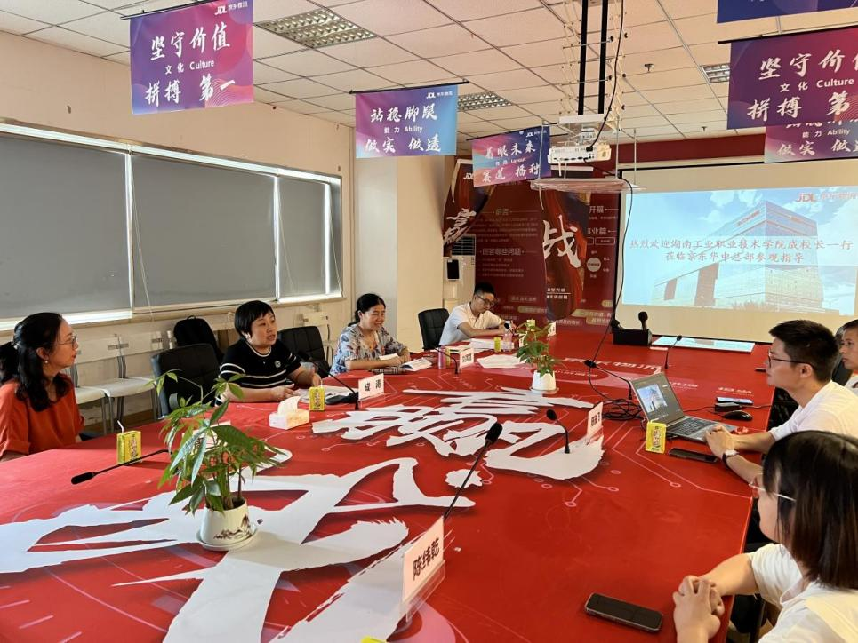 座谈会上,湖北京邦达物流科技有限公司华中校企合作负责人陈骏飞详细介绍了京东的发展历程、业务情况、员工成长路径和薪酬待遇等内容,表达了与学校建立长期合作关系的意愿。