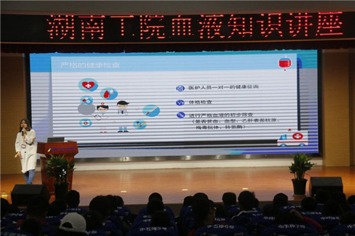 10月15日下午,我校邀请长沙市无偿献血中心专家张洁为2018级新生作《血液,你不知道的那些事》专题讲座,普及献血科普知识,引导在校大学生积极参与无偿献血公益活动。该活动由学生处、团委共同组织。