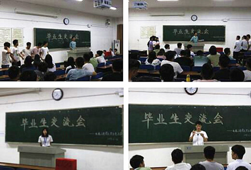 本网讯 6月12日,机械工程学院学生党支部在2304教室举办2018届优秀毕业生经验分享交流会,邀请优秀毕业生代表陈慧明、罗程、曾海杨、吕云财等四位应届毕业生与学弟学妹交流。该院学生支部全体成员参加交流会,会议由支部负责人李文广老师主持。