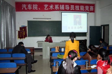 近日,现代设计艺术系与汽车工程学院联合举办了“2012年度辅导员职业技能竞赛”,学生工作处处长苗治田、汽车工程学院党总支副书记段可、现代设计艺术系党总支书记朱岱力应邀作为评委出席了此次竞赛。