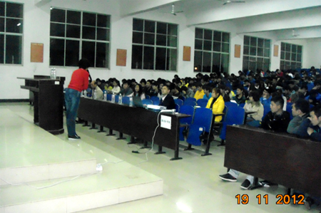 11月19日晚,由信息工程系举办的“设计你的大学生活”讲座在1202教室举行。此次讲座邀请到牛耳教育集团总裁赵静芳女士主讲,信息工程系全体大一新生参加讲座。与以往的枯燥、死板式的讲座大不相同,赵静芳女士用90后惯用思维方式完美诠释了一个大学生该有的生活方式。