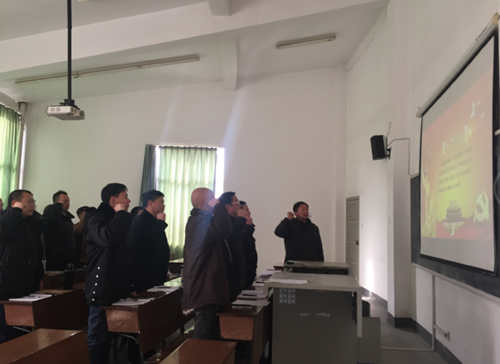 本网讯 “我志愿加入中国共产党,拥护党的纲领,遵守党的章程……”在实训中心党总支书记皮智谋的带领下,党支部全体党员高举右手,重温了入党誓词。