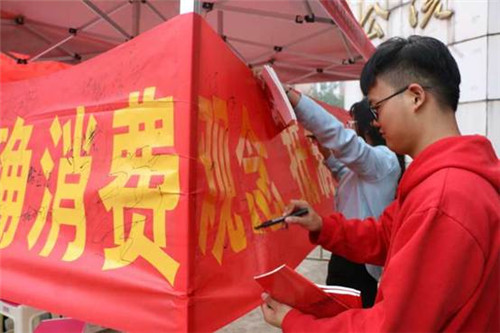 活动现场,组织方向师生派发了金融知识宣传单以及小礼品,吸引了大家驻足了解金融知识,树立正确消费观念,预防非法校园贷诈骗。同学们主动在宣传横幅上签名倡议抵制非法校园贷行为。