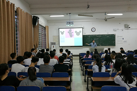 唐亮先生从设计师的角度出发,围绕“如何实现一个小目标”这一主题,以天猫双11活动地铁艺术展、迪士尼儿童艺术展策划为例子,说明在这个电子科技产品更新迅猛的时代,UI(用户界面)设计和UE(用户体验)的重要性。他还带来了北上广深一线城市广告公司的真实案例和项目资讯,让同学们了解到广告艺术设计行业的市场需求。