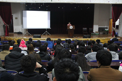 本网讯 为在校内普及商务礼仪知识,规范学生的行为、举止,提高学生人际交往能力, 3月21日晚,经济管理系在大学生活动中心组织开展“云想衣裳花想容--学商务礼仪 树美好人生”商务礼仪专题讲座。讲座由经济管理系胡敏老师主讲,院团委副书记李陟威及学生代表共同聆听了讲座。
