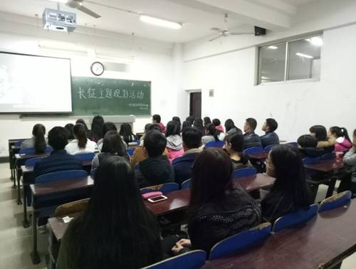 本网讯 12月29日晚,经济管理系党总支学生支部所有成员在1206教室集中观看革命历史题材纪录片《长征》,并学习习近平总书记在纪念长征胜利80周年大会上的讲话。