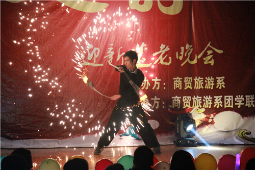 商贸旅游系党总支书记杨学文致辞。他对关注晚会的领导、老师致以衷心的感谢,对辛苦准备节目的老师和同学们表示诚挚的问候。