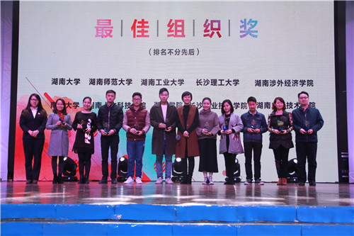 本网讯 12月9日下午,由共青团湖南省委宣传部、学校部主办,中国联通湖南省分公司协办,湖南涉外经济学院、年轻人杂志社、湖南省学联秘书处承办的“WO爱社团”2016年度湖南省高校最受欢迎“百优十佳”学生社团网络推选活动颁奖暨2017年度活动启动典礼在湖南涉外经济学院体育馆举行。我院天心阁文学社及楚艺书法协会荣获2016年度“百优十佳”社团。