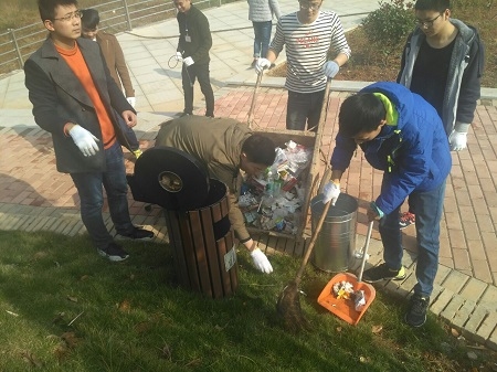此次活动主要是清除汽车大楼旁景观湖周围的杂草与树枝、白色垃圾以及行人道的垃圾。大家到达目的地后,分成两个小组,用提前准备好的扫帚、手套等工具将道路旁和绿化带内的零碎垃圾一点点清理干净。在清扫过程中,不少同学的衣服还溅上污水,但没有人喊脏、叫累。活动过程中,不时有学院教职工经过,纷纷对同学们竖起了大拇指并称赞道:“脏活,累活,党员带头干、抢着干,真正体现了学生党员的示范性和先进性,同学们好样的!”。