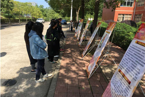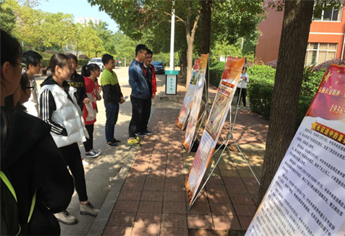 本网讯 11月11日下午,经济管理系弘扬长征精神·纪念红军长征胜利80周年图片展在第一教学楼校道旁开展。