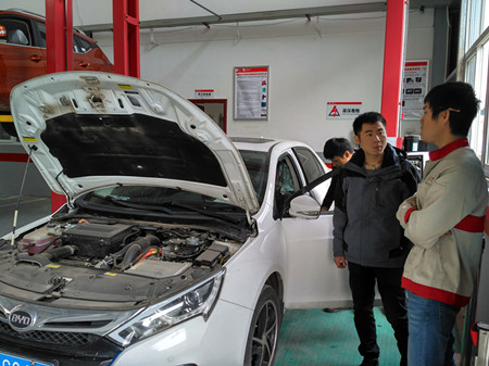 调研组一行参观了湖南岳迪汽车服务有限公司的维修车间。相关技术人员向调研组展示和讲解了新能源汽车的保养、动力电池的结构与维修、电机的结构与维修,比亚迪秦、比亚迪秦唐等混合动力汽车的整车构造与工作原理,比亚迪新能源汽车的故障检测设备等新能源汽车相关保养与维修内容。校企双方还就新能源汽车实训室的建设方案与新能源汽车技术专业人才培养等方面进行了深入交流和探讨。
