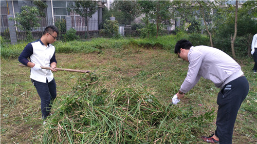 党员捐赠林杂草灌木丛生,且暗藏倒刺,同学们小心翼翼,齐心协力,在学校园丁的帮助下,将党员捐赠林清扫干净;在第五教学楼旁劳动的学员也不甘落后,用铲子、用夹子、用手将道路旁和绿化带内的零碎垃圾一点点清扫干净。
