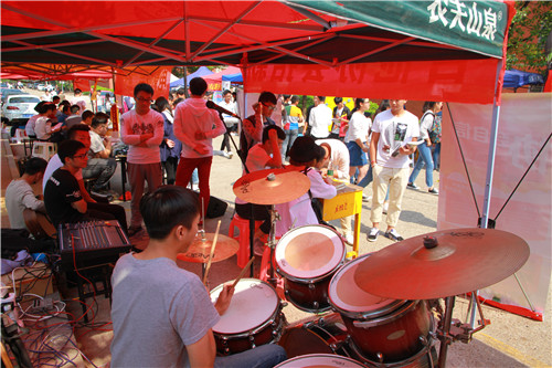 在招新现场,各社团成员热情宣传,积极为学弟学妹答疑解惑,不少社团还通过现场表演节目彰显其独特魅力:起点音乐协会一首《爱是怀疑》点燃了整个招新现场气氛,骑行协会表演的花式骑单车引得不少新生围观,楚艺书画协会、手绘社等社团招新台前展示了最新的学生作品,棋协社成员则以“棋”会友、乐在其中,电子协会也摆出了自制的电子元件小成果。