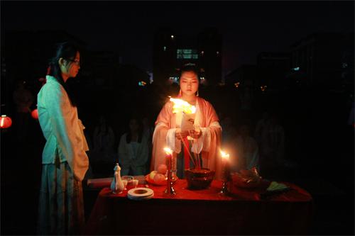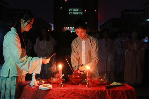 本网讯 9月15日,正值农历八月十五中秋佳节。傍晚,由大学生社团联合会主办、天心阁文学社承办的中秋祭月活动如期举行。活动包括介绍中秋来历、讲解汉服知识、拜月祭祀、行酒吧令等内容。