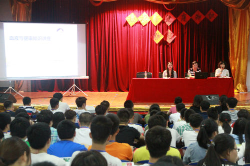 本网讯 6月1日,由院党校主办、院党校第59期积极分子培训班承办的血液与健康知识讲座在我院大学生活动中心开展。长沙血液中心体采二科主任赵飞雪、血源组组长王宇老师、血源组组员虞李老师共同出席讲座,本次讲座由血液中心王宇老师主讲,院党校第59期积极分子培训班班主任罗德贤老师主持,院党校第58、59期积极分子培训班全体成员共同听取了本次讲座。