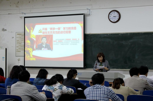 本网讯 5月24日,机械工程系党总支与学院机关三直属党支部在2411教室召开“两学一做”学习教育扩大会议。大会邀请了学院副院长邱丽芳做“两学一做”学习教育专题党课。会议由机关三直属党支部书记周承华主持,两总支委员、支部委员、组织员及教师党员参加学习。