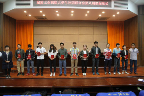 本网讯 5月19日,第八届大学生社团联合会换届仪式在图书馆多功能报告厅举行。出席换届仪式的有院团委书记黄敏、院团委副书记李陟威、社联主席李思月、社联副主席李冬及各社团成员。
