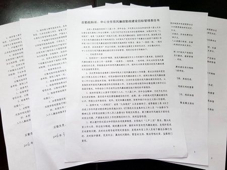 本次党员学习活动还加入了党风廉政建设学习内容。党支部向全体党员传达了王岐山在十八届中纪委六次全会上的讲话精神,要求党员干部严格按照上级要求,认真履行“一岗双责”,结合“三严三实”专题教育,扎实进行整改落实;梳理各岗位廉政风险点,制定详细的防控措施。后勤处直属党支部书记现场与四个科室科长主任签订了“党风勤政廉政建设责任目标管理责任书”,落实“一级抓一级,一级对一级负责”的廉政建设运行机制,深化党风廉政建设,以推进后勤事业不断进步。