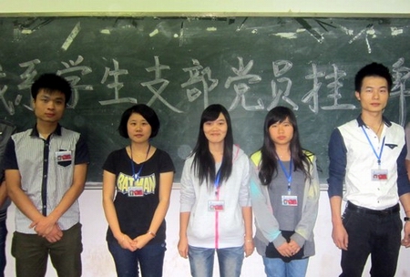 仪式前,机械工程系学生党支部书记罗德贤对本次活动的开展作了说明。她希望学生党员通过这项活动,增强党员意识,明确自身责任,自觉服务同学,用实际行动践行学生党员的光荣使命,展示机械系学生党员的真风采,为创建优良学风、校风作出积极贡献。